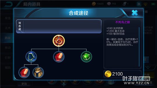 不死鸟之眼可以增加蔡文姬的最大生命,并且被动效果能够在蔡文姬血量低于一定百分比时,利用自身的技能或受到队友的治疗后,恢复的生命值大幅度增加,可以让蔡文姬在战场上成为人人惧怕的存在,同时不死鸟之眼还会为蔡文姬增加法术防御,让蔡文姬面对法师英雄时,生存能力更高。