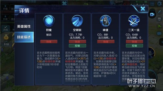 被动-狩魔:宫本武藏在释放技能后,将会强化下一次普攻,造成额外伤害并减少所有技能的冷却时间。