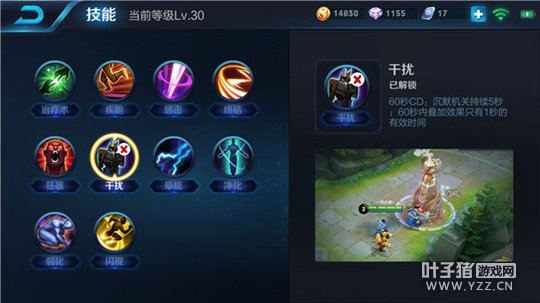 干扰:速推流刘禅必带。配合刘禅可以对防御塔进行控制的机制使用,增加推进和抗塔强杀能力。