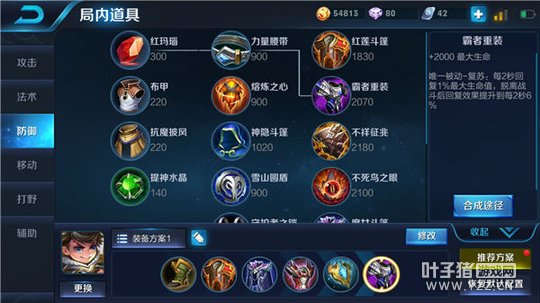装备推荐:影忍之足+红莲斗篷+魔女斗篷+反伤刺甲+极寒风暴+霸者重装
