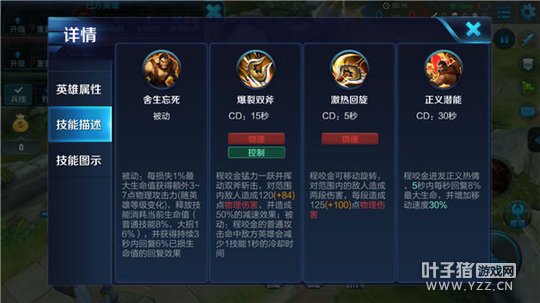 解析:终结能对身边残血敌军造成致命伤害,提高程咬金的输出能力。晕眩能使程咬金拥有更强的控制能力,配合上自身的技能,可对敌方造成不小的干扰。