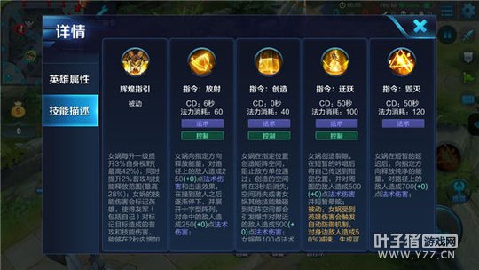 女娲是一名较为依赖等级的提升,才能完美发挥技能优势的法师,相对于其他法师,女娲具有较强的自保能力,在支援队友方面也有明显的优势,大招可以进行超远距离的支援,不论是收割残血英雄,还是抢夺敌方野区的红、蓝BUFF等,都有明显的优势。