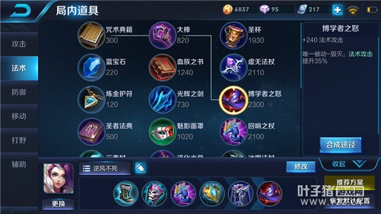 贤者之书:价格较高,不过提供的属性加成也很高,配合博学者之怒的被动效果可以使甄姬拥有超高的法术攻击。