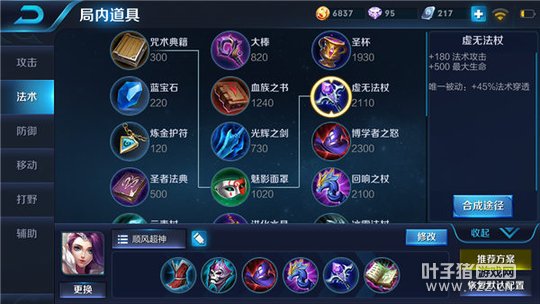 虚无法杖:主要提供法术穿透加成,用于削弱敌人的法术防御,提升甄姬后期的伤害能力。