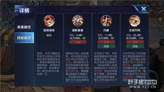 被动技能——密探谛听:被动技能提高了李元芳的战场存活,让李元芳能够提前察觉敌人的埋伏,安全避开敌人的游走。