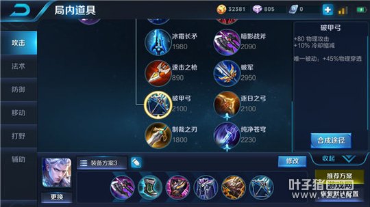 装备推荐:暗影战斧+抵抗之靴+暴烈之甲+魔女斗篷+不祥征兆+破甲弓