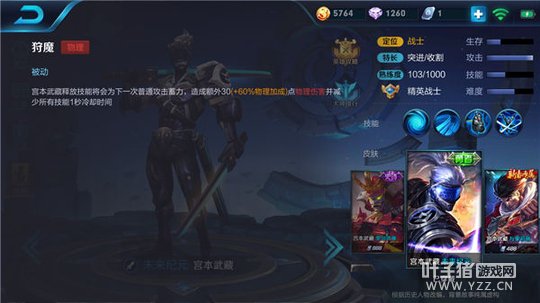 宫本武藏是上单英雄中的一个狠角色,他的优势在于持续作战能力强,利用一技能的击落飞行物效果可以化解掉敌军的大部分输出技能;另外控制能力和爆发力异常出色,只要不是在等级或装备上落后太多,击杀敌军脆皮还是相当轻松的。那么在实战中,我们究竟该怎么做才能发挥出他的优势呢?下面通过技能来为大家详细的解读!