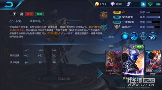 解析:强控技能,可以锁定一名敌军,并在延迟后突进到敌军身旁,造成击飞控制和伤害,随后宫本武藏进入二刀流状态,强化普攻的距离加大,二技能的突进距离变远,而且所有技能和普攻都能造成额外的伤害,是宫本武藏秒杀脆皮的关键。