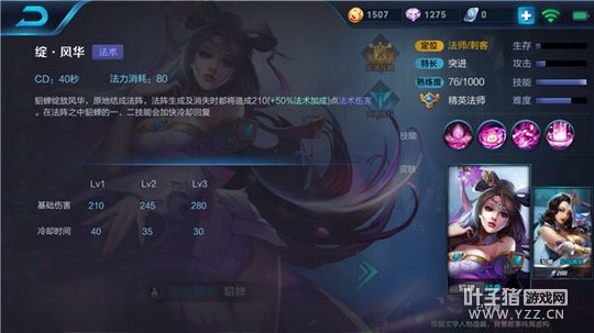 解析:位移技能,施法时可以瞬间消失,在此期间无法被选中,可利用这个效果躲避敌人的指向型控制技能;另外位移完成后,可以释放法球打击就近的敌人,并且每次打击都能叠加一层被动印记,如果是对单体目标,可以瞬间触发被动的伤害;最后该技能的初始冷却时间虽长,但在法球命中敌人后可以减少时间,增强了她的灵活性。该技能是叠加被动印记最高效的方式,而且有位移效果,因此作为主加技能获取的收益最高。