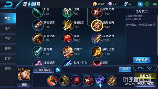 属性总和:物理攻击+9,物理穿透+64,移速+10%,暴击率+5%,攻击速度+26%
