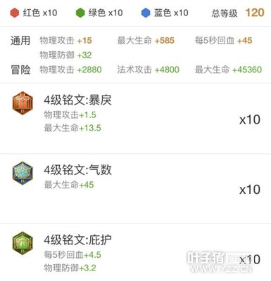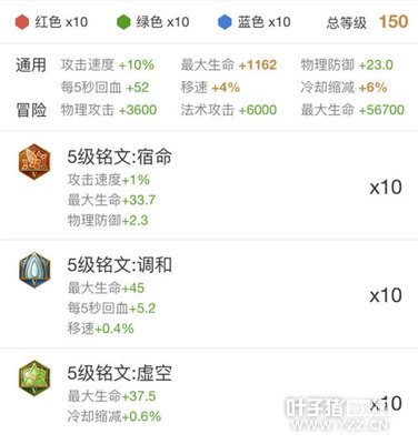 红色铭文:宿命*10 攻击速度+10% 最大生命+337 物理防御+23