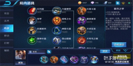 暗影战斧:战士的一件核心装备,能够增加打在护甲值不高的敌方身上伤害,开启大招后伤害最大化,被动的减速追击敌方非常好用;