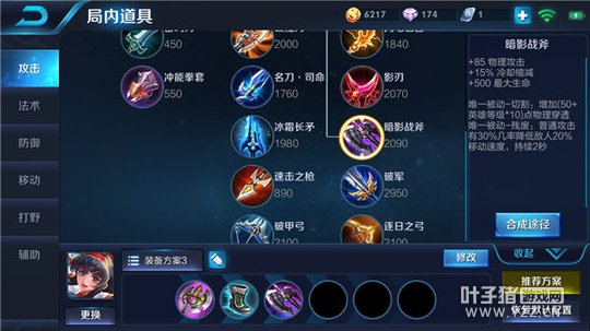 后期六神装:巨人之握、抵抗之靴、暗影战斧、冰痕之握、反伤刺甲、破军