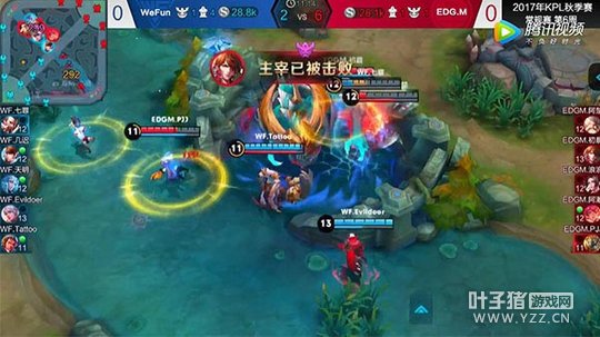 11分03秒,EDG.M趁着对方在整理兵线时果断开打主宰,虽然只有李白与老夫子两人但打得速度相当惊人。WeFun发现对手打主宰后快速赶到,曹操更是直接开大招进场试图抢掉主宰,但最终被李白利用大招直接收掉。