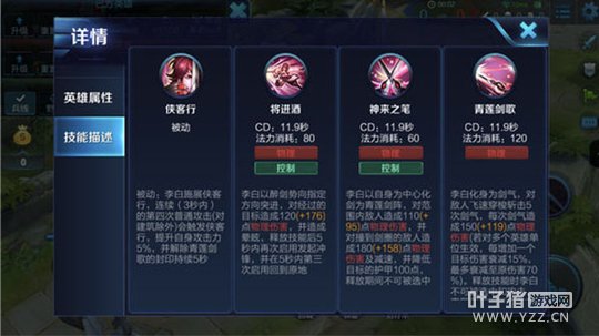李白是一位机动性极强且爆发能力出色的刺客英雄,只要能够在游戏前期做到平稳发育,游戏中期开始,李白将成为敌方脆皮英雄挥之不去的梦魇。不过李白的操作难度颇大,需要玩家有比较多的练习,才能熟练掌握。