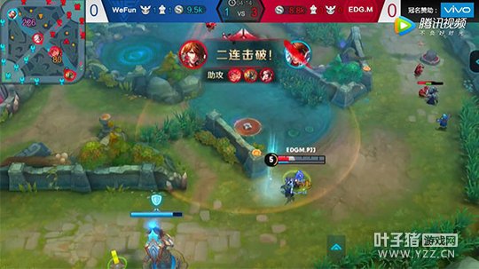 比赛进行到3分58秒,WeFun抱团入侵EDG.M的蓝BUFF野区试图抢蓝,但被鬼谷子先手开到两人,EDG.M众人赶到后爆发团战,李白在团战中位移进场开出大招,直接秒掉残血两人收获双杀,最终EDG.M收获三个人头,成功打赢了这波团战。