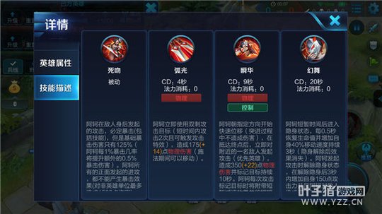 阿轲的大招能够帮助阿轲快速接近敌人,来到敌人的背后时,阿轲可以立即释放一技能与二技能攻击敌人,因为阿轲被动技能的效果,可以让阿轲从背后攻击敌人时,百分之百触发暴击效果,适当的出一把无尽战刃还可以将阿轲的暴击伤害极限提高,能够让阿轲快速的击杀对手。