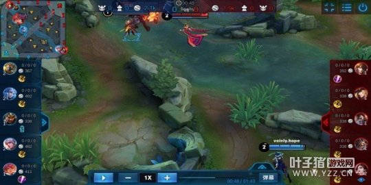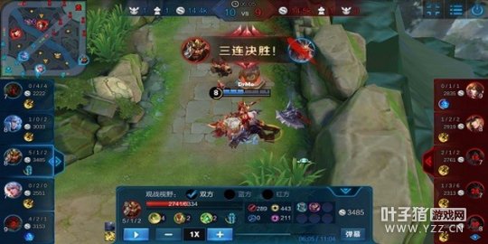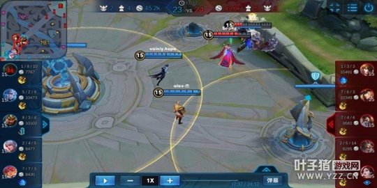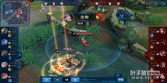 关羽是一个相当克制武则天的英雄,他移动速度较快,而女帝辉光的弹道速度较慢,很难命中,再加上自带的净化,很难被控制住。实战中三人组抓死对方两人后,关羽支援到位。