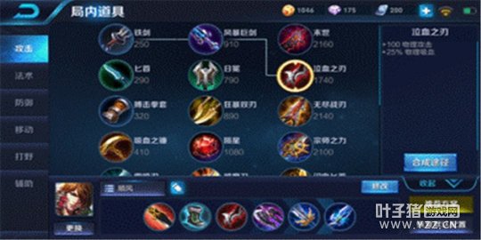 泣血之刃:李白刷野时带了吸血能做到最低消耗清野发育,被敌方入侵时候能有很好血量战斗;