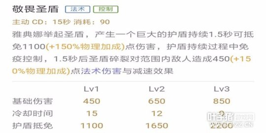 解析:雅典娜开启护盾,可以减免大量伤害,1.5秒后圣盾碎裂对范围内敌人造成一定伤害与减速效果。护盾期间免疫控制。该技能可以在关键时刻保护雅典娜,比如说在强杀敌人后可以位移出塔同时开启大招抗住防御塔的攻击。也可以在后期开团时开大骗取敌人技能,给己方团战制造优势。