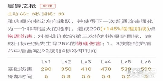 解析:雅典娜向指定方向跳跃,并强化下次普攻,对英雄连续的第三枪将对敌人造成贯穿效果。1、3技能的护盾命中后会减少2技能4秒的冷却时间,该技能是雅典娜的主要输出技能,位移一段距离,可以迅速接近敌人,普攻命中后,一技能基本上也会命中,此时又可以利用二技能给予敌人高额伤害。该技能在追击敌人时特别好用,就算是位移较多的韩信在被雅典娜近身后也很难逃脱掉,推荐主点。