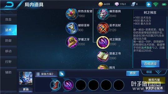 前期钟馗比较缺蓝,因为自身技能前期比较短板,所以很容易被敌人攻击到,有了时之预言之后,钟馗每次升级都会为自己增加一定百分比的生命值以及法力值,为钟馗弥补前期续航能力不足的问题,并且被动效果还可以根据钟馗的法术强度来为自身增加物理防御和法术防御,让钟馗在前期以及中期拥有超高生存能力的同时,也可以打出极为不俗的伤害。