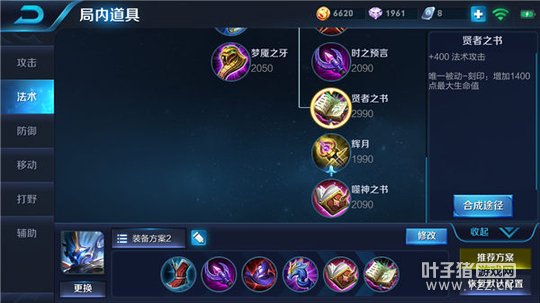 贤者之书则能够为钟馗增加巨额的法术攻击,让钟馗的技能伤害以及整体的输出能力大幅度增强,被动效果还可以为钟馗增加一定量的最大生命,让钟馗在后期即便与敌人对线,也不会被轻易击杀。
