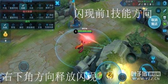1.虞姬可以闪1,具体操作方法是先释放1技能,发现无法击中目标后在1技能蓄力时快速向新的方向释放闪现,虞姬的1技能会向闪现后的方向射出,具体操作方法可见下图。