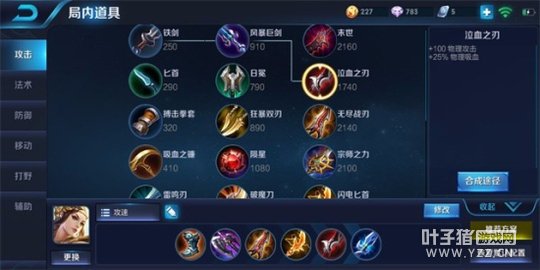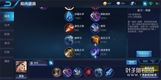 出装:急速战靴+暗影战斧+无尽战刃+闪电匕首+泣血之刃+名刀司命