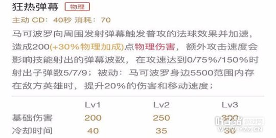 数值分析:第一颗子弹造成70%物理加成的物理伤害,第二颗子弹造成40%物理加成的物理伤害可以让马可波罗在一次普攻后打出110%物理加成的物理伤害,由此可以看出高攻速马可波罗的伤害基数的可怕之处。
