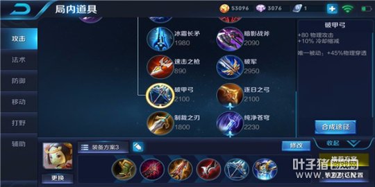 破甲弓增加的物理护甲穿透可以保证鲁班对于敌方的前排也有可观的伤害,让他对敌方坦克和战士造成较大的威胁。如果对面没有比较肉前排可以推荐影刃。对脆皮的伤害更加的爆炸。