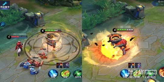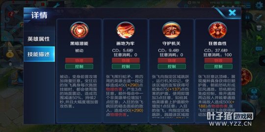 张飞变身前普攻会增加狂意,变身后张飞一二技能都会使周围敌人造成50%减速(2秒持续时间),且其普攻伤害会有所提升。张飞需要在对线游走中不时普攻来提升自身狂意,变身后的张飞有不错的输出留人能力。