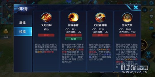 解析:第五次普攻会进行疯狂扫射,物理加成很高,值得注意的是距离远并且可暴击,所以这是一个很好的输出手段,也是战前消耗的良好手段。