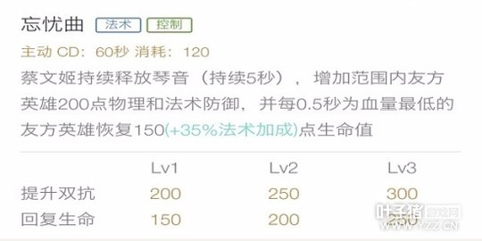 数值分析:2技能不仅基础伤害较高,而且法术强度加成相比1技能也要高一些。提升等级也不会减少2技能的冷却时间,而且蔡文姬主要的职责还是给队友恢复生命值,2技能用作控制就好了,建议副加。