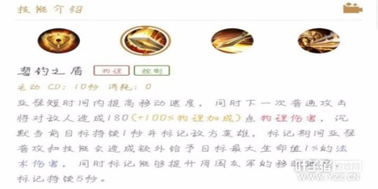 整体分析:这个技能就是亚瑟攻守兼备的主要技能,能进攻能保护。有着一小段的移动速度和沉默效果,并且标记后亚瑟的普通攻击和技能都会造成额外的法术伤害,标记也会使友军获得相应的移动速度。