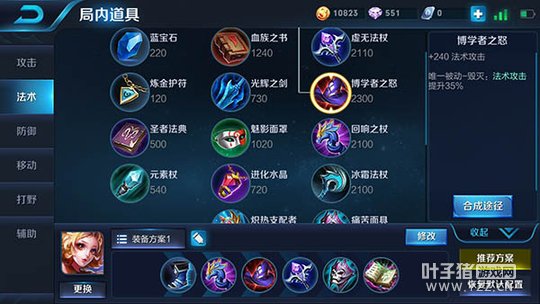 对于爆发型法师来说,核心装备博学者之怒必不可少,顺风情况下第三件可以直接做出来,然后补充个魅影面罩后直接做出贤者之书,达到法术伤害最大化。逆风情况下可以先补充一个魅影面罩,然后转痛苦面具。这件装备相对来说便宜一些,而且增加伤害的同时也可以撑点血量,关键时候能保护住自己不被击杀,维持住战局。如果是大逆风情况下,下一件可以选择做出冰霜法杖。这件装备可能不是非常适合妲己这类高爆发英雄,但是对有大逆风情况下,妲己的技能CD相对较短,可以多释放技能配合冰霜法杖被动减低其灵活性,限制敌人的进攻。