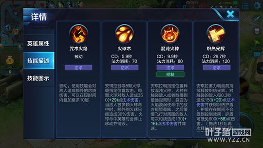 分析:安琪拉召唤五颗火球朝指定位置攻击,每颗火球都能对敌人造成伤害,敌人被多颗火球命中,额外的火球造成的伤害会减少。一技能的是安琪拉的主要输出技能,爆发力非常高,但是对安琪拉预判能力的要求也比较高。