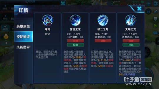 赵云是一个拥有强大位移能力和控制能力的战士英雄,多段位移让他能够自由的穿梭于战场,寻找合适机会gank或单杀敌人,是一名综合能力非常强的英雄。