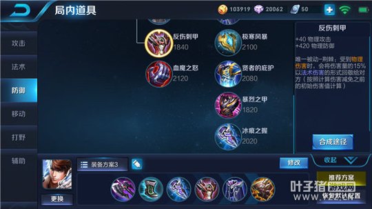 六神装:暗影战斧、抵抗之靴、冰痕之握、反伤刺甲、魔女斗篷、不祥征兆