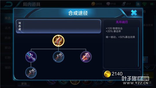 先来介绍一下无尽战刃属性,无尽战刃增加120物理攻击和20%暴击率,唯一被动是增加50%的暴击效果,无论是增加物理攻击还是增加暴击率,无尽战刃都属于非常优秀的攻击装备了。这件装备非常适合阿轲,各项属性都完美契合了阿轲的需要。配合阿轲被动的效果,20%的暴击率还能为阿轲提供10%的暴击伤害,所以在阿轲做出来无尽战刃以后,只要打中敌人的背后,阿轲的暴击伤害就能提高到185%,暴击一下能打出的伤害非常恐怖。