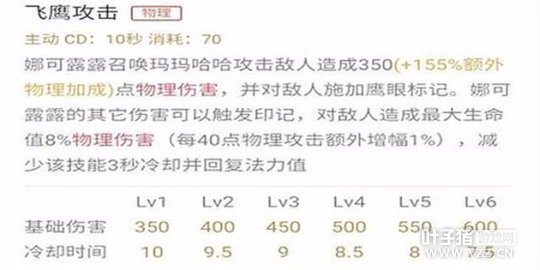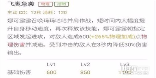 数值分析:娜可露露一技能拥有极其恐怖的爆发伤害,而且节能冷却时间随技能等级升高而减少,因此推荐主升一技能。