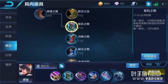 抵抗之靴,提升娜可露露的移动速度和法术防御,增加的韧性可以减少娜可露露被控制的时间。