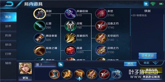 出装推荐:急速战靴+闪电匕首+逐日之弓+无尽战刃+泣血之刃+破甲弓