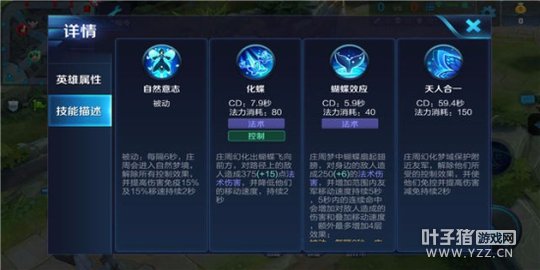 整体分析:庄周唯一的控制技能,呈扇形施法特效,而且呈中远程的攻击距离,无论是在追击敌人还是掩护队友撤离时,都有很高的既得收益!另外它的减速效果可以达到2秒,让他限制敌人的效果更好。
