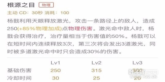 解析:这个技能具有强大的恢复能力,并且命中敌人越多恢复自身血量也越多,这样不仅保证了杨戬的伤害,同时还大大增强了他的续航能力。