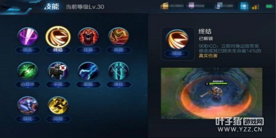 杨戬作为一个战士,有时候在一技能二段后敌人依旧残血的情况,而杨戬自身不带位移,追人比较难,很容易被敌人逃走,带终结则可以迅速将残血敌人击杀。