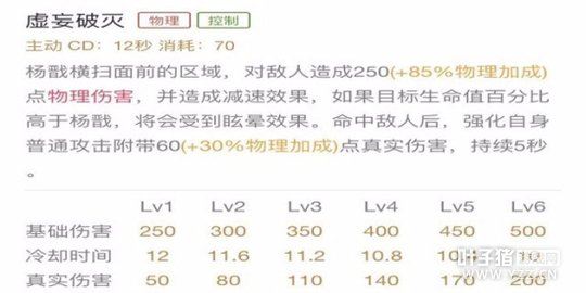解析:这个技能只要命中敌人,那么接下来5秒的伤害都会为真实伤害,我们知道,在王者荣耀中,真实伤害可以无视一切护盾和抗性,所以伤害非常高,并切当杨戬血量百分比少于敌人还会将敌人眩晕,这个控制可以保证杨戬在低血量时不仅能顺利撤退,有时还可以完成反杀。