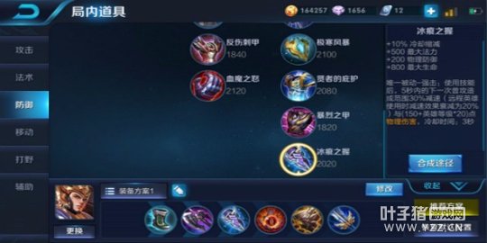 冰痕之握不仅增加自身200物理防御和800生命值,同时还减少10%的冷却和提升500的法力值,以及被动范围减速,无论是追击敌人还是配合二技能进行撤退,效果都非常好,如果敌方有强物理攻击的英雄,如马可波罗、孙尚香等,则可以考虑把此装备替换成反伤刺甲。