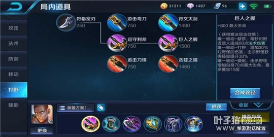 巡守利斧在前期提供不错的血量,提高打野收益和扛伤能力,出完暗影战斧后再将其升级为巨人之握,使达摩拥有足够的血量在前排扛伤害打控制。