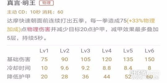 数值分析:被动技能的回血效果生效于技能命中,回血效果会随着时间而提高。这个效果能够大大地提高达摩的续航能力,增强他的单挑能力。使用技能就能增加护甲,三层叠满,效果非常强,能够显著提高达摩的抗伤能力。